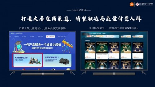 在品牌愈发注重转化的当下,小米电视商城打通了大屏电商渠道,精准触达高质量付费人群。母婴品牌可以将产品上架儿童商城,儿童会员享受优惠购,也可以在小米电视实现与淘宝连接,一键直达下单页面,缩短转化路径,提高转化效率。