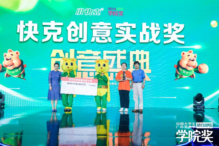 “快克创意实战奖”也在本次创意盛典上隆重揭晓。与学院奖常规奖项不同的是,快克创意实战奖立足于企业市场应用,从实战视角出发,挖掘青年作品的可执行性、传播性、创意性,并对优秀作品给予鼓励与回馈。快克创意实战奖奖项数量丰富,大大增加了获奖机会,且总奖金数高达113999元,更是激发了同学们的创作热情。