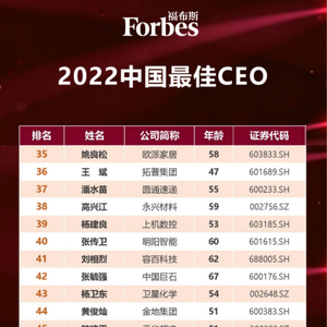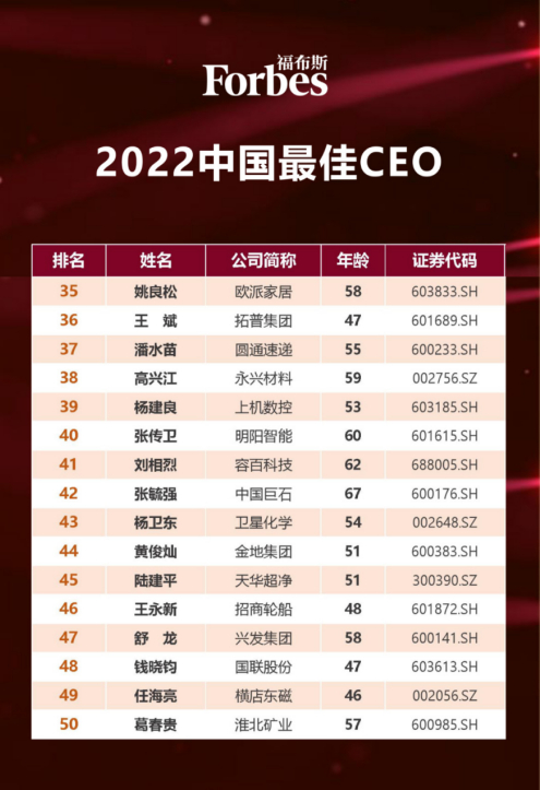 行业唯一!姚良松首次入选福布斯2022中国最佳CEO 榜丨欧派家居