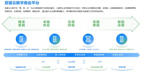 为更好地应对政企数字化、企业数字化需求,百望云也在不断完善产品,通过技术创新和客户洞察,帮助客户实现业务全流程数字化。而票单证数字化是最好的企业基础设施,当我们能够完成基础票据、档案的电子化、数字化,流程的在线化、自动化,就为未来延展到支出管理、供应链管理、供应链金融等领域,提供了数据支撑,能够更好地帮助企业实现智能分析、智能决策。