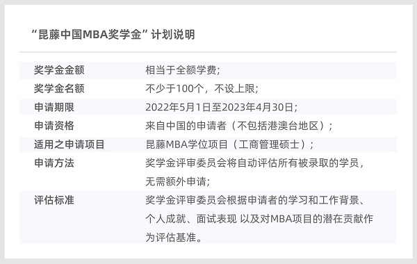 “昆藤中国MBA奖学金”计划,重磅来袭!
