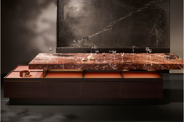 •在20世纪30年代,砂磨烤漆特殊工艺闻名于世,采用这种加工工艺制作的台面色泽清透莹润。