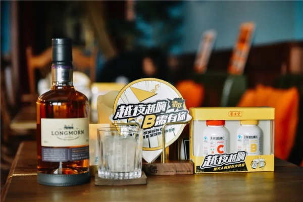 养生堂×滤界酒馆其后发起线下达人「网红酒吧品鉴」活动,现场各类美酒随处可见,还有大咖、网红、达人齐助阵!店里随处可见的“越夜越嗨 B需有你”元素,传递出尽情嗨玩的创意理念,让现场达人感受到,原来熬夜和健康可以和平共处。同时,与滤界酒馆的合作中还有下单指定鸡尾酒套餐,即可赠武汉版养生堂BC营养装1份,让美酒与健康都不可辜负!