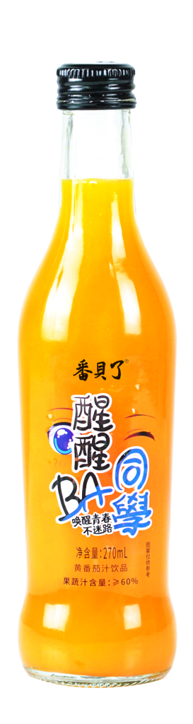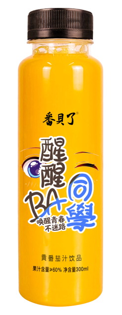 番貝了“醒醒BA同学”黄番茄汁饮品以年轻人喜欢的漫画形象、卡通的字体,简单直接地告诉年轻人:醒醒吧!吾辈当自强!让他们在品尝酸甜、可口、健康的番茄汁的同时,也能够感受到一股正能量。