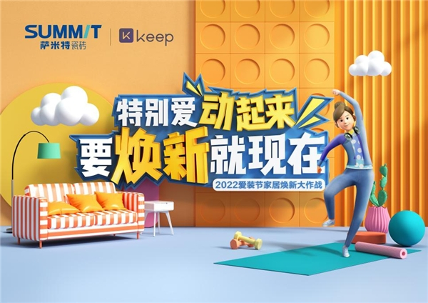 萨米特重磅携手互联网独角兽Keep,延续去年的破圈之势,以真实案例为基础,继续踏上堪比“梦想照进现实”的改造之旅。“爱装节”以“特别爱动起来,要焕新就现在”的积极态度,号召人们将热爱付诸于行动,不仅要“华丽逆袭”焕新家,更要焕活身体的运动细胞,以饱满精神面貌和充足的力量,迎接生活挑战!