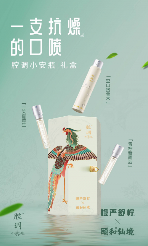 据悉今年8月中,慢严舒柠旗下口腔喷雾品牌腔调小安瓶™将与颐和仙境皇家级IP联合推出全新国风「百鸟朝凤」口喷礼盒。从精致的屏风画稿设计,到充满仪式感的卷轴开盒方式,再到隐藏款口味空山接骨木,「百鸟朝凤」口喷礼盒将精致国风潮流与创新养护口腔咽喉的生活方式相结合,带给年轻人视觉冲击和全新精致轻养生活理念。