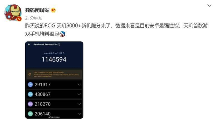 ROG新机搭载天玑9000+,被曝安兔兔跑分超114万,天玑首款游戏手机太顶了!