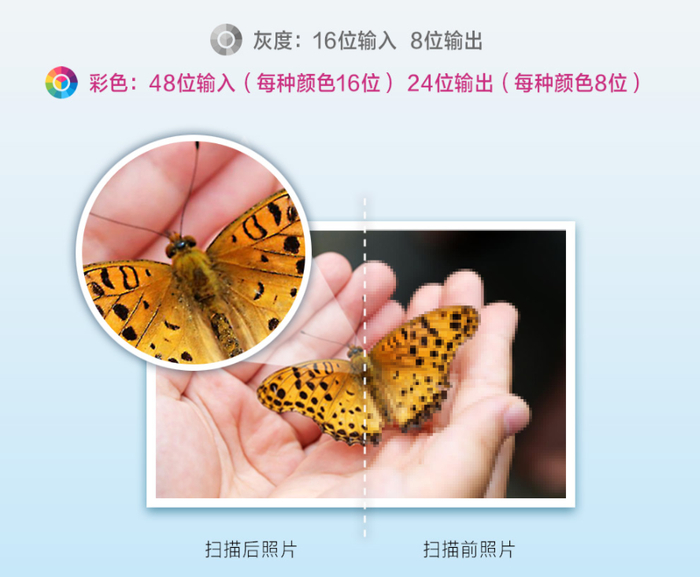 48Bit无损色彩输入能够让扫描的照片更加清晰自然。孩子的美术画作、奖状、证书、珍贵的老照片,即刻扫描,分类收纳保存,简单方便快捷,小白也能轻松搞定。