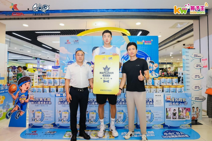 8月20日,孩子王联合伊利QQ星奶粉举办“小小CBA·QQ星榛高大挑战—明星嘉年华”活动。著名CBA球星王少杰空降现场,与众多孩子王会员朋友们热情互动,获得孩子王 “黑金”会员卡。