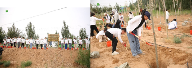 在沙漠中,研学团成员珍重宣誓成为一名“治沙信使”,多人合种、共浇一片林,或亲自种下一颗希望的树苗,挂上刻有自己名字、编号、树牌信息的标牌,未来还能通过小程序,回头看看,自己在沙漠种下的树,会如何让地球慢慢地由黄变绿。