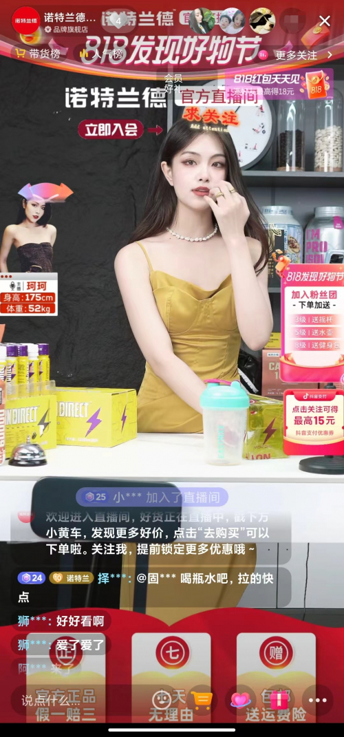 泛商城作为“人找货”的流量转化阵地,运营关键在于对用户心智的打造。基于此,抖音818发现好物节中,诺特兰德主要立足触达链路及转化终端进行优化。首先优化商城运营场景,打通多端流量入口——818期间,诺特兰德优化商城购物频道,进一步增加爆款补贴、限时秒杀等福利活动,促进引流入会和会员沉淀,同时积极报名抖音商城侧官方活动如超值购(原百亿补贴)、品牌馆、猜你喜欢等,丰富触达链路,进一步提升品牌曝光;其次优化商城品牌基建,提升流量点击转化——结合品牌调性优化店铺页面装修,提升用户体验,同时优化商详及主图设计,补充赠品/入会权益等利益点、专利证书等卖点,帮助用户进行购买决策;然后优化商城搜索全链路,实现关键词精准匹配——注重关键词优化,提高品牌搜索词投放,同时加强商品主图、标题、短视频、直播等和品牌关键词的关联性,形成关键词流量全链路,促进关键词精准匹配。通过泛商城的布局和经营,诺特兰德登上抖音818发现好物节膳食营养补充行业商城成交榜单、商城推荐渠道成交榜单、搜索渠道成交榜单、店铺页面成交榜单等多个TOP1。