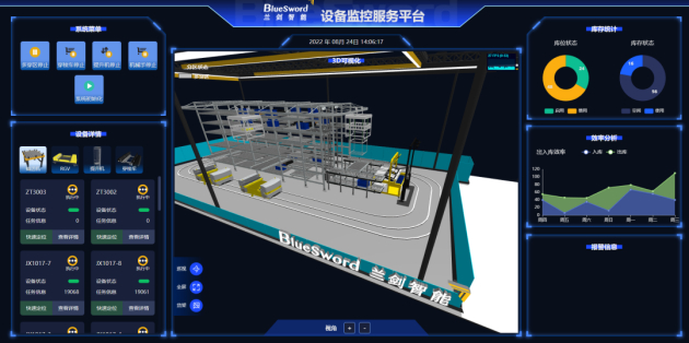 以高端物流软件起家的兰剑智能,在软件方面的技术底蕴非常深厚。兰剑智能率先将数字孪生技术引入物流领域,自主研发了“兰剑数字孪生系统”,一款集动态建模、虚拟仿真、离线调试、三维监控、预测性维护、智能优化于一体的全流程三维物流平台。