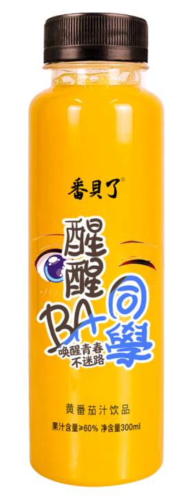 当今社会,信息技术迅猛发展,互联网裹挟着整个世界加速向前冲,一切都是快餐式的,来不及冷静思考,不少人迷失在手机中无法自拔。熬夜、疲劳、视力下降、免疫力下降、精神萎靡……成为生活常态。为唤醒青春,一款新型黄番茄汁饮品横空出世——番貝了“醒醒BA同学”,她提神、解乏、养颜、开胃、醒酒……功效卓著,好处多多。她不仅是一款健康果汁,更是一款警醒果汁、励志果汁。她汇聚无数匠心,只为这一刻出现在你面前。