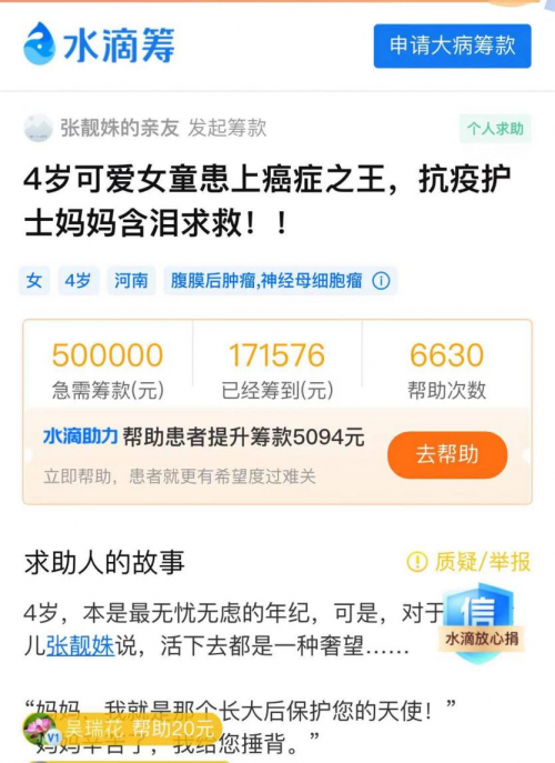 战疫一线护士为4岁女儿战胜癌症,已通过水滴筹筹集17万余元