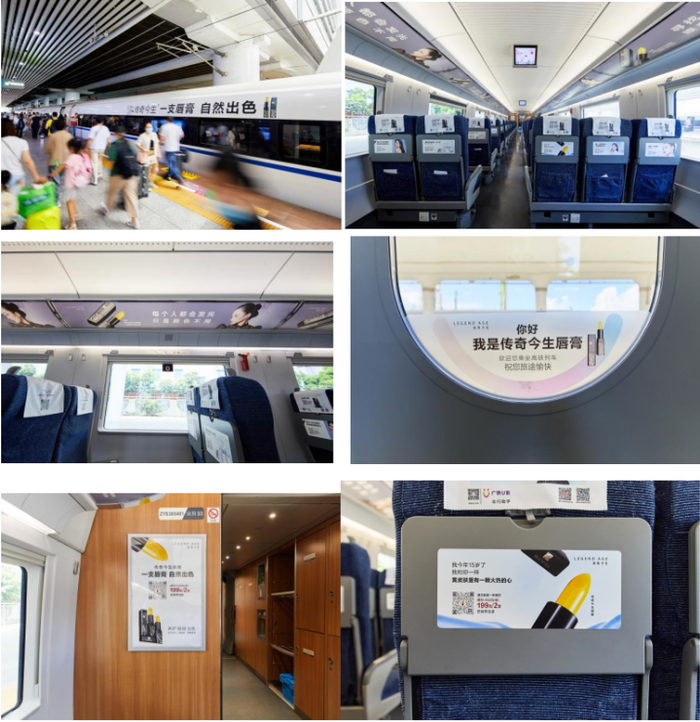 此时正值暑运,高铁汇聚超大客流,为品牌构建了极具仪式感和体验感的传播场景,乘客从走上站台的第一刻,就感受到来自传奇今生品牌的魅力。车厢外,印有“一支唇膏,自然出色”主题及传奇今生Logo标志的高铁冠名列车格外显眼;车厢内,来自传奇今生唇膏的美好遇见,在头片、桌贴、品牌天幕、海报等媒体上铺陈开来,带给乘客沉浸式场景化体验。来往穿梭的传奇今生高铁冠名列车,打造了传奇今生的“移动传播长廊”,传奇今生极致单品,也让人们重新认识传奇今生,全面提升品牌在全国范围内的知名度、美誉度和影响力,实现了“中国速度”与“民族品牌”的完美结合。