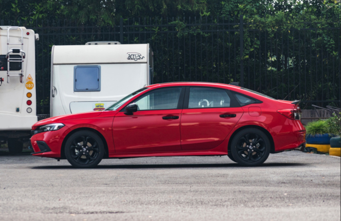 从思域的车身侧面来看,依旧有着溜背式的动感造型。不过,轮毂的样式没有什么新意,相对来说显得有点老气了。尾灯的样式也进行了更改,比原来帅气了不少,少了一些杀马特的气质。