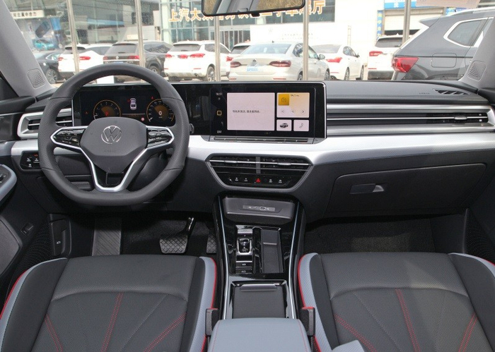 上汽大众凌渡L首度搭载了悬浮式双联屏设计,10吋全液晶数字仪表与12吋多点触控液晶中控屏组合为一体,与中控操作区一起呈现出向驾驶位倾斜趋势,提供丰富便捷的交互体验同时营造满满的数字座舱感。仪表台采用贯通式设计,功能区域划分清晰,整洁规整,一体化装饰面板贯穿了整个中控台,一路延伸至两侧门护板,视觉上拉宽内饰空间效果的同时层次感也很丰富。空调出风口采用隐藏式的设计,与横向饰板融为一体,更具现代科技感。