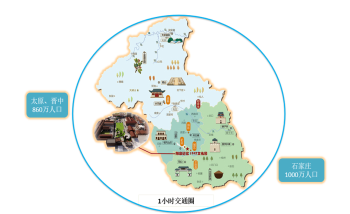“阳泉记忆•1947”文化园作为山西省首个大型文旅综合体项目,占地144.9亩,位于南庄路118号,与阳泉站等重要城市交通枢纽仅1.3公里。周边1.5公里范围内17万人口,29所学校。周边4个交通站点,8个公交线路,快速串联阳泉城市各个板块商业消费。优越的地理位置与密集的城市人口为阳泉记忆▪1947文化园的升级奠定了良好的基础。