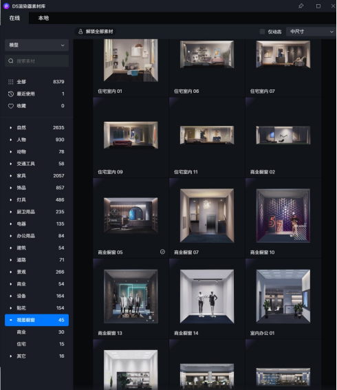 “偷懒神器”视差橱窗素材一上线,外网已经赞不绝口了。简单来说,视差橱窗就是一个个可以发光、为室内造假的盒子。如图,透过玻璃可以看到每扇窗户中建筑内部被照亮的空间,这些都是直接使用了D5素材库中的视差橱窗。选择合适的橱窗素材安到建筑物的窗口上调好位置,打开光源,即可为室内空间营造出家具装修一应俱全,有人生活/办公的场景,在建筑可视化项目中非常实用。目前D5提供的橱窗类型已经很丰富,足够满足各类商业、办公、住宅橱窗装饰需求。此外,整体亮度、光源开关、灯光强度、元素等参数支持调整,“元素”开关控制室内非必要配件的有无,此开关为打开状态时,还可以调整室内配件的位置,控制其距离镜头的远近。这些简单实用的设置进一步减轻了用户的工作量,免去了自制贴图、手动打光、逐一装饰的繁杂,节省了大量时间,同时将渲染真实度和场景可信度都提升了一个层次。