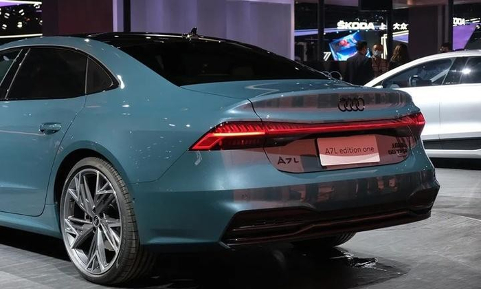 全新奥迪A7L整个车身很修长、低趴,在这种前提下,上汽奥迪还为这台先行版配备了21英寸的轮圈,这在同级别或者说同价位中也是很少见的,比如CLS只有19英寸轮圈。既不缺乏运动感,也很有气场,完美融合了运动和行政两种身份。