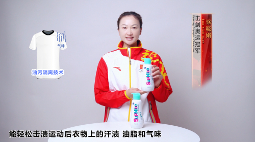 击剑奥运冠军骆晓娟热情分享了她的专业运动服洗护秘籍:“大家是不是觉得击剑运动员又酷又飒?其实穿着厚厚的击剑服训练,我们可是‘汗如雨下’。好在我有秘密武器——超能SupNice运动衣物洗衣液,它的油污隔离技术,能轻松击溃运动后衣物上的汗渍、油脂和气味,就像击剑一样快、准、狠,而且还能18小时长效抑菌,保持运动服吸湿、排汗、透气性能,享受大汗淋漓的快感,保持由内而外的光鲜,和我一起,做一名超能女人。”