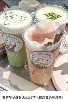 茶饮品牌纷纷与各领域的热播剧、热门IP、美妆等各个品牌推出联名产品,线上、线上多维度拓展品牌知名度。联名两方利用各自的影响力,意图获得1+1>2的市场营销效果,向消费群体渗透品牌理念与价值。