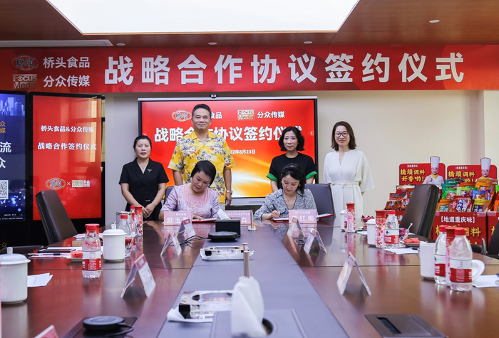 8月23日,桥头食品与分众传媒战略合作签约仪式在重庆举行。会上,桥头食品与分众传媒达成深度战略合作,未来双方将共同推动桥头食品通过分众传媒线下第一消费场景的核心传播优势持续领跑火锅底料赛道,全面构建橋頭品牌的区域引领力与全国影响力。