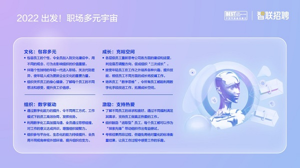 智联招聘最佳雇主提出的“职场多元宇宙”模型中,“多元”是核心。