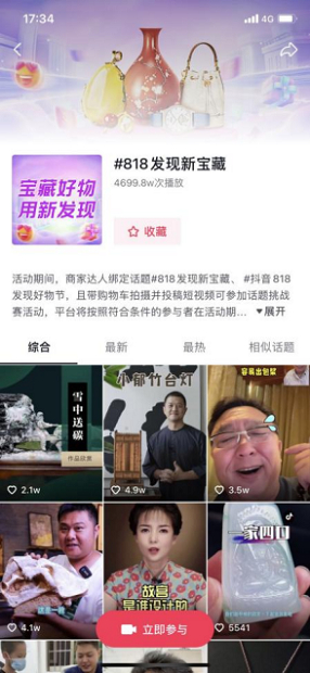 面对这样的挑战与机遇,珠宝潮奢行业如何搭上直播电商的快车,探索新的发展空间?当抖音818发现好物节撞上珠宝潮奢行业,又有哪些新玩法?在这个全民共同探索和发现好物的消费节日里,抖音电商珠宝潮奢行业围绕#818发现新宝藏主题植入了多种玩法,不仅让用户对“老物件”的新趋势、新面貌、反差感有了更深的认识,还帮助众多优质商家实现了品牌与收益的双丰收,也为行业贡献了一场教科书级别的营销破圈范例。