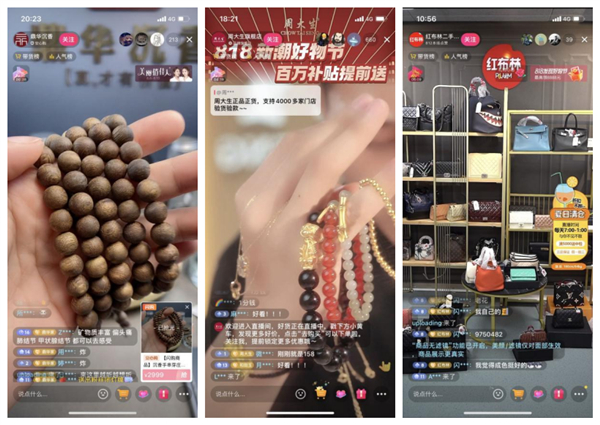 数据显示,抖音818发现好物节期间,抖音电商珠宝潮奢行业成交额破百万的直播间共有458个 ,订单量是去年同期的14.9倍 ,交易额同比增加131% 。同时还涌现了周六福福禄连连足金珠手链、鸿韵翡翠手镯等稳坐销量榜前排的爆款单品。