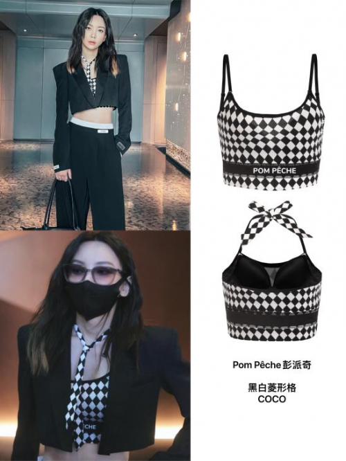 明星pick的小众品牌,背后都有令人惊艳的故事,这款黑白格内衣,正是2022年崭露头角的PomPêche彭派奇功能性时装内衣,来自上海、巴黎、阿姆斯特丹、比斯克及东京5个不同国家和肤色的创意人共同成立的多国基因的混血儿,Pompom是指啦啦队员手中挥舞的啦啦球,Pêche是法语中的蜜桃,也代指女性的身体,Pompom for Pêche,是为每一种身体而喝彩!