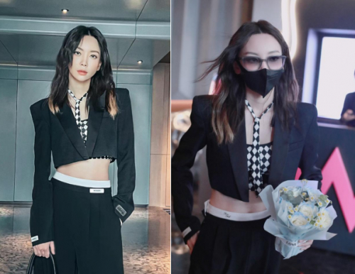 掌握流量密码,不仅仅依靠舞台魅力,几周一播的舞台不能稳固最佳流量,于文文用私服穿搭的酷飒,直接引爆潮流时尚届。众所周知,女星成也穿搭败也穿搭,节目第一期播出后,于文文火速掀掉假刘海,一改早年以甜妹形象示人的刻板印象,批下性感长发,用简单黑色短西装衬搭国际时装内衣Pom Pêche彭派奇,一只手托墨镜、一只手捧鲜花,霸总上班氛围感直接拉满!