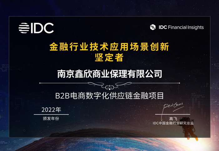 开鑫科技旗下鑫欣保理荣获IDC“金融行业技术应用场景创新坚定者”称号