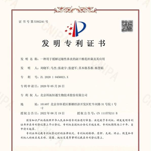 2022年8月19日,北京科拓恒通生物技术股份有限公司自主研发并申报的《一种用于缓解过敏性鼻炎的副干酪乳杆菌及其应用》(专利号ZL202010456021.X)获得国家知识产权局正式颁发的发明专利证书。