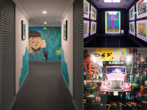 大楼外部由注目而缤纷的涂鸦外墙构成,结合酒店内的世界知名当代艺术家的真迹作品,从草间弥生、奈良美智、村上隆、Andy Warhol到岳敏君等,都是一场盛大的艺术飨宴。