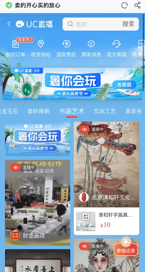 UC直播“匠心品质节”期间,包括国家级非物质文化遗产项目代表性传承人孙建兴、玉雕艺术大师刘瑞阳、国家工艺美术大师,景泰蓝国大师刘永森、龙泉剑村刀剑研究院院长、吴门画派掌门人沈坤等在内的多位艺术大师,和全国十余个特色产业带百余商家、非遗传承人及匠心手工艺人纷纷走进UC直播间,为消费者立体呈现中国传统文化及工艺品的文化内涵、历史传承及制作流程,与网友实时互动交流。