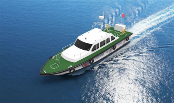 该船型是江龙船艇超高速执法快艇系列成熟船型,总长14.5m,型宽3.6m,型深1.95m,吃水0.8m,采用双机双桨推,航速不小于50kn,具有良好的快速性、稳定性和操纵性。该船主要航行于沿海航区,用于海警部队执行任务。
