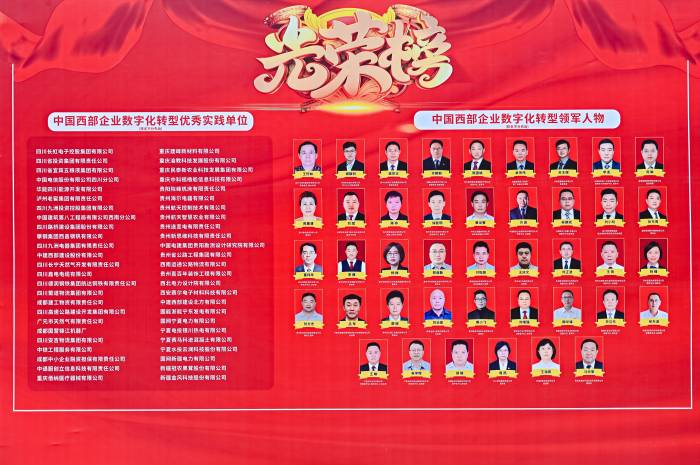 会上,为鼓励在大力推动企业数字化转型实践中成效显著的单位和成绩突出的个人,表彰了长虹集团、川投集团及中通服创立科技等50家单位为“中国西部企业数字化转型优秀实践单位”荣誉称号,授予王怀林、谢毅钊、方佩等46人为“中国西部企业数字化转型领军人物”荣誉称号。