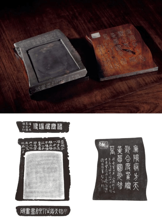 六舟砚则由杭州藏家姚羲民一直收藏,由高均儒铭,高行信篆,明俭刻砚匣,吴朴堂刻王福厂题砚铭。这类作品得到市场追捧也体现出市场的成熟度,与藏家对金石学理念的认可。