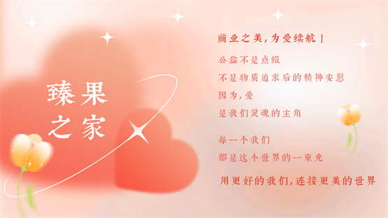 据了解,臻果的每一笔订单都贡献了部分收益用于支持臻果公益,其拳拳之心,令人敬佩!或许,正如臻果发展理念所指出的那样,用更好的我们,连接更美的世界。人间有爱,大爱无疆!