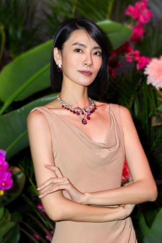 舒淇佩戴Eden The Garden of Wonders奇境伊甸园系列优雅亮相,春意伊甸园(Spring in Eden)项链与祖母绿迷宫(Emerald Labyrinth)耳环,以祖母绿独特的深邃色泽嵌入璀璨钻石中,柔美的弧形线条间点缀祖母绿珠粒,释放出无与伦比的华贵气息。维纳斯魅影(Emerald Venus)腕表闪耀着浓郁的绿色光辉,衬托她的迷人魅力。