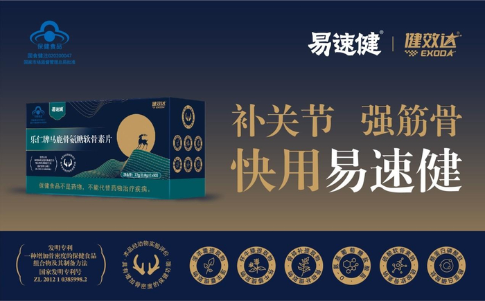 近年来,随着健康意识不断攀升,特定营养素需求激增,其中骨关节健康氨糖类产品凭借护关节、强劲骨的特性获得消费者青睐,市场规模持续走高。匠心原料与创新配方成就标杆产品,易速健马鹿骨氨糖将现代医学与古典中医相结合,专为亚洲人体质打造,融合7重护骨精粹:氨糖、马鹿骨、硫酸软骨素、怀牛膝、骨碎补、淫羊藿、酪蛋白磷酸肽,科学配比,由肾入骨,增益补骨。易速健凭借7重护骨精粹,满足中老年及高强度运动人群对骨健康的快速诉求,抢占中国氨糖速效新标杆,一经面世,便成为骨关节健康市场的新爆点,创造瞩目增量奇观!