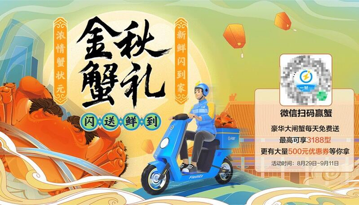 为了满足消费者第一时间品食鲜活大闸蟹的美好愿望,近日蟹状元联合闪送平台推出了“金秋蟹礼,闪送鲜到”主题活动,依托闪送平台快速急送的优势,解决大闸蟹同城配送问题,全面保障金秋蟹季大闸蟹的配送时效、鲜活率和服务品质。