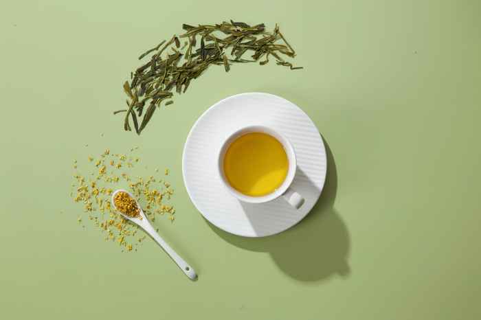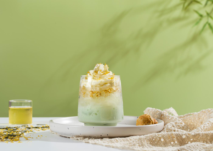 除了梅占茶系列,这次南京展桔品茶业首次推出“桂花龙井”,也成为了现场的“C”位。广西金桂与龙井进行碰撞,桂花香、豆香、兰花香,在口腔里绵延缠绕,一杯尝尽江南烟雨之香。桂花龙井与鲜牛乳一拍即合,鲜润爽滑的口感让人惊艳。