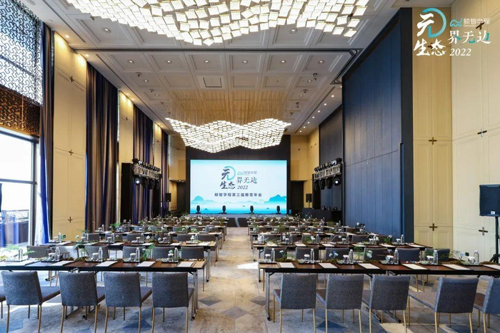 今年教育年会的举办地是杭州钓鱼台酒店。杭州钓鱼台酒店位于钱塘江畔,推门即可看到磅礴的江景,寓意着鲸智人勇立潮头、乘风破浪的拼搏与勇气。本届年会主题为“元生态,界无边”,彰显着鲸智学程构建校外教育新生态的决心,不为未来设限的期望。