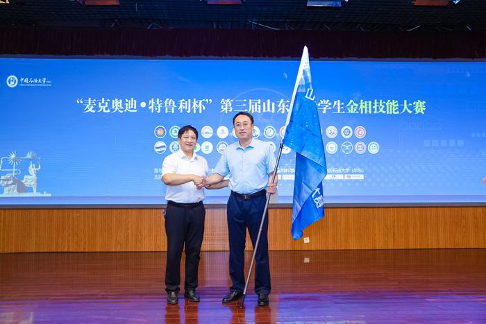门小刚书记向山东省大学生金相技能大赛竞赛委员会移交大赛会旗