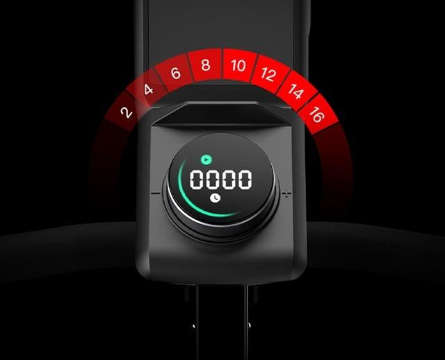 智能电磁控阻力系统,外接电源通过电流对磁场产生影响,从而改变磁场对飞轮的阻力强度,细分出16档磁控阻力,不管你是想进行休闲漫步式的热身运动、提高体能训练的舒心小跑运动、提升集体爆发力的进阶有氧运动,还是高强度的强化训练,都能精准调节到合适的运动强度,使锻炼更高效,效果更显著。