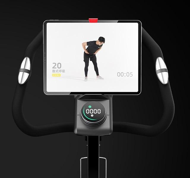 此外,大尺寸的IPAD支架,可以适配各种尺寸的电子设备,顶部可调节卡槽设计让电子设备更稳固,不管是跟着健身课程视频一起训练,还是边骑行边看剧,都能方便自如,稳稳当当。
