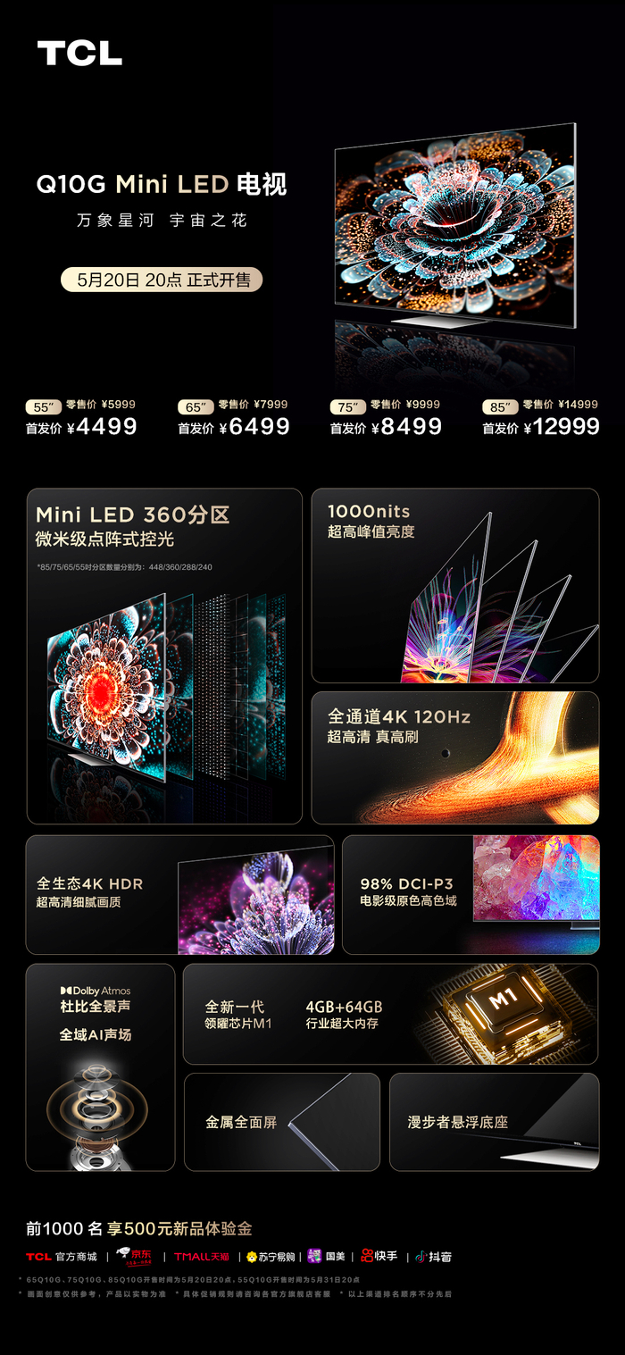 如今,TCL将抖音电商视作收获高价值用户、长期经营的主要阵地;随着5月“全域兴趣电商”的提出,基于抖音商城“中心场”的想象空间,双方的合作路径更加多元而清晰。通过新品发布实现销量爆发、借助抖音618好物节热度加深品牌心智,合作的新落点就此酝酿:TCL旗舰机型Q10G在抖音电商消费电子家居生活行业的联合首发。