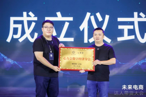 心力会数字经济分会成立,蓝鲸私域高海波任分会会长,心力会会长吴世春为高海波颁发“心力会数字经济分会”成立牌匾。